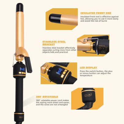 ENZO EN-9102 LCD مكرّم الشعر بكرة سيراميك 25 مم مع أيونات سلبية وشاشة
